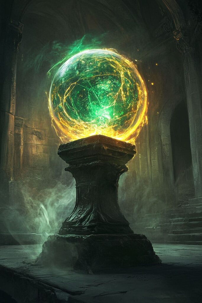 Despite its size, about that of a large melon, it feels impossibly heavy, as though it anchors the very essence of the planet it resides on. To gaze into its depths is to see the interplay of science and magic—a fusion of alien technology and ancient sorcery, bound together in a delicate, volatile balance.